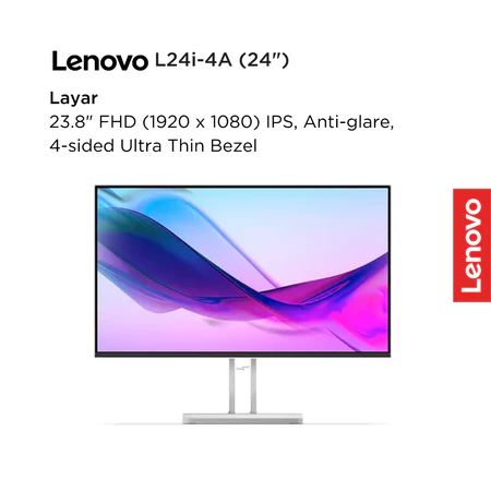 Lenovo Monitor L24i-4A 67BCKAC6WW Cloud Grey (23.8" FHD IPS 250nits, Antiglare, Refresh Rate 48Hz - 100Hz, 99% sRGB, Tilt, VESA Mount, 4-sided Ultra Thin Bezel, VGA, HDMI, Audio, Integrated Speaker 2x 3W, HDMI Cable, 3Y Pick-up & Repair)+ Packing Kayu (kecuali Instant)