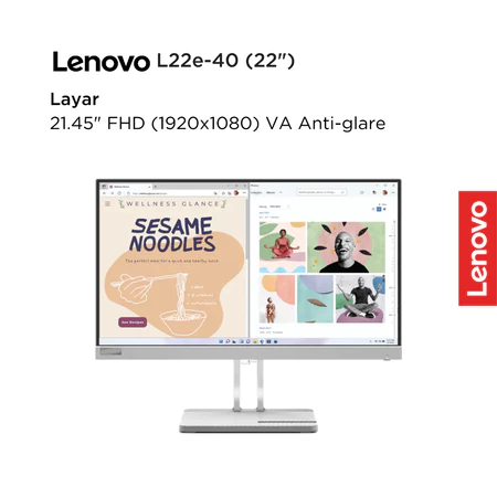 Lenovo Monitor L22e-40 67AFKACBWW Cloud Grey (21.45" FHD (1920 x 1080) VA 75 Hz, 250nits, Antiglare, 72% NTSC, AMD FreeSync, Tilt, VESA Mount, 3-side NearEdgeless) + Power Cable + HDMI Cable + Garansi Resmi 3 Tahun Pick-up & Repair + Packing Kayu (kecuali Instant)