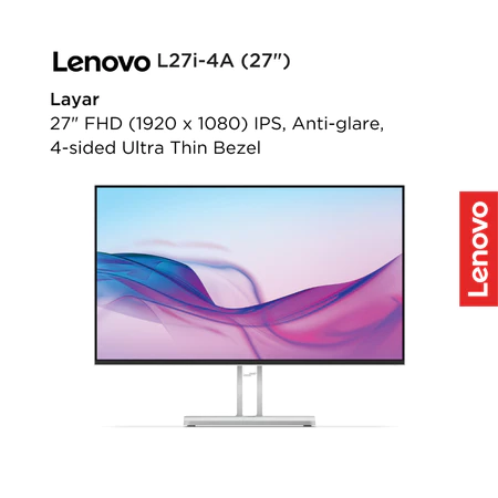 Lenovo Monitor L27i-4A 67BEKAC1WW Cloud Grey (27" FHD IPS 300nits, Antiglare, Refresh Rate 48Hz 100Hz, 99% sRGB, Tilt, VESA Mount, 4-sided Ultra Thin Bezel, 1x VGA, 2x HDMI, Audio, Integrated Speaker 2x 3W, HDMI Cable, 3Y Pick-up & Repair) + Packing Kayu (kecuali Instant)